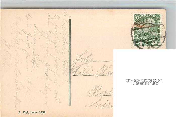 43534308 Gries-Quirein Bozen Rosengarten postalisch gelaufen Erhaltung siehe scans [PaolaD17] old postcard Paol Katcode 11240