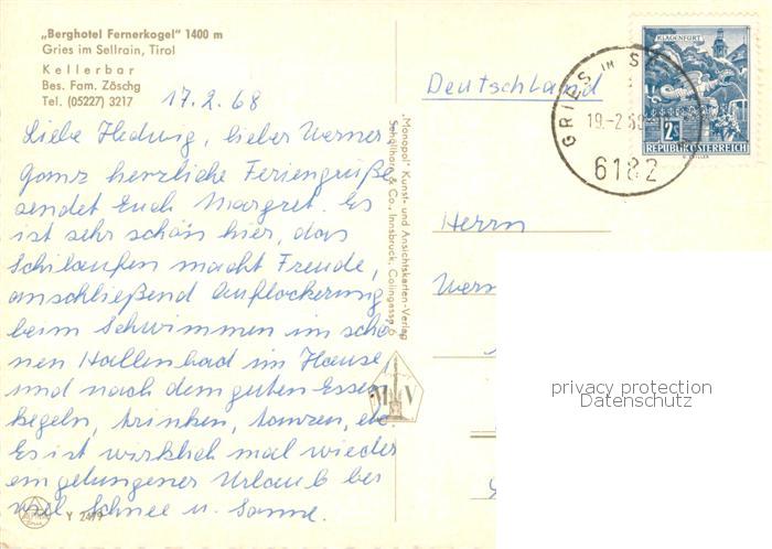 73780651 alte Postkarte Gries Sellrain Berghotel Fernerkogel Gaststube postalisch gelaufen Erhaltung siehe scans [WerneD78] KatCode: 11390332070314