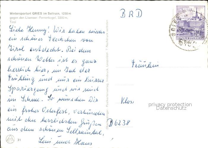 72108245 alte Postkarte Gries Sellrain mit Lisenser Fernerkogel postalisch gelaufen KatCode: 11390332070314