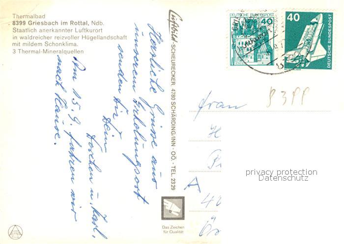 73030477 alte Postkarte Griesbach Bad Fliegeraufnahme postalisch gelaufen Erhaltung siehe scans [KathaD81] KatCode: 11110009275124