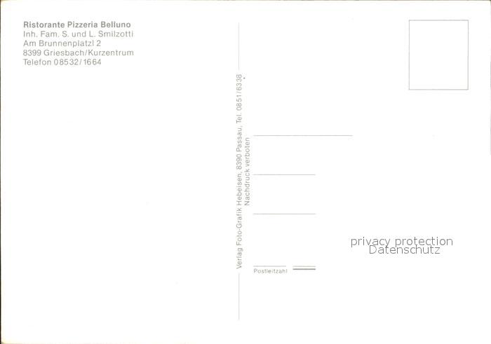 72259627 Griesbach Bad Ristorante Pizzeria Belluno postalisch nicht gelaufen Erhaltung siehe scans KatCode: 11110009275124