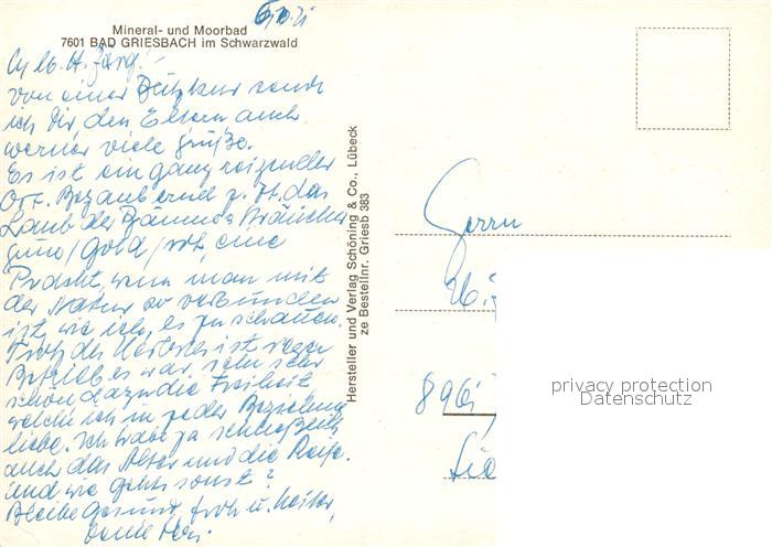 73098623 alte Postkarte Griesbach Ortenaukreis Bad Kirche postalisch gelaufen Erhaltung siehe scans [KathaD81] KatCode: 11110008317126