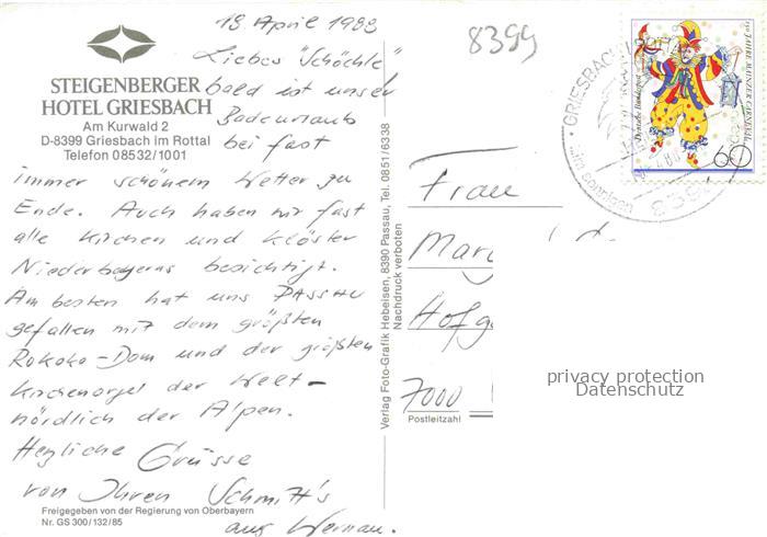 74049574 alte Postkarte Griesbach Rottal Bayern Steigenberger Hotel postalisch gelaufen Fliegeraufnahme Erhaltung siehe scans [FriedD77] KatCode: 11110009275124