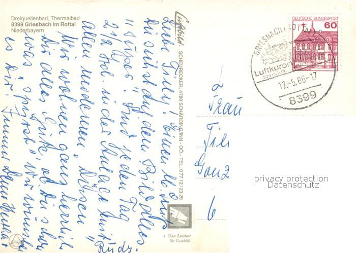 73099460 alte Postkarte Griesbach Rottal Dreiquellen Thermalbad Details postalisch gelaufen Erhaltung siehe scans [WerneD78] KatCode: 11110009275124