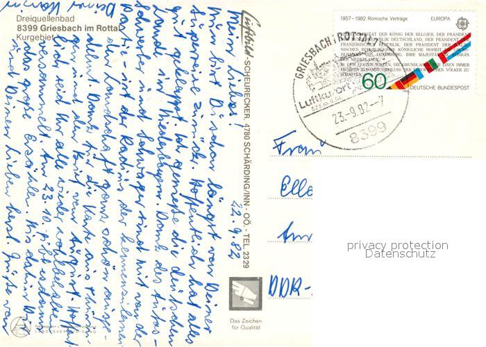 73600126 alte Postkarte Griesbach Rottal Dreiquellenbad Kurgebiet Fliegeraufnahme postalisch gelaufen Erhaltung siehe scans [FriedD77] KatCode: 11110009275124