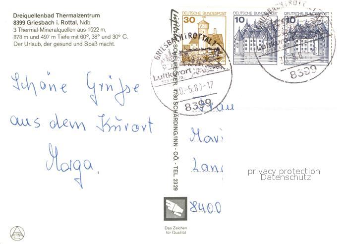 72993756 alte Postkarte Griesbach Rottal Fliegeraufnahme Dreiquellenbad postalisch gelaufen Erhaltung siehe scans [AndreD76] KatCode: 11110009275124