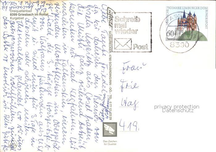 72276912 alte Postkarte Griesbach Rottal Fliegeraufnahme Dreiquellenbad postalisch gelaufen Erhaltung siehe scans KatCode: 11110009275124