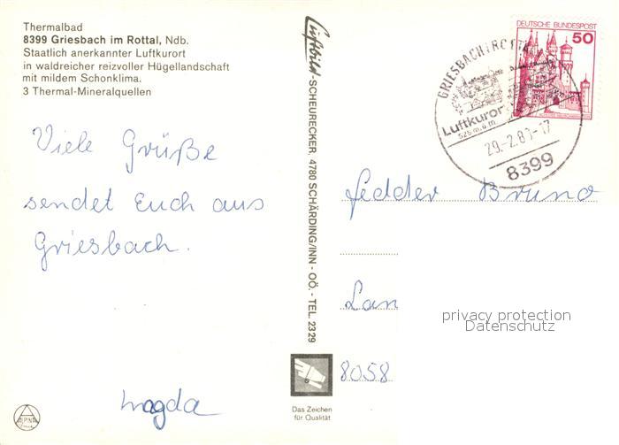73580572 alte Postkarte Griesbach Rottal Fliegeraufnahme postalisch gelaufen Erhaltung siehe scans [KathaD81] KatCode: 11110009275124