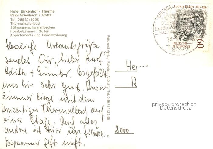 73165547 alte Postkarte Griesbach Rottal Hotel Birkenhof Therme Hallen und Freibad postalisch gelaufen Erhaltung siehe scans [WerneD78] KatCode: 11110009275124