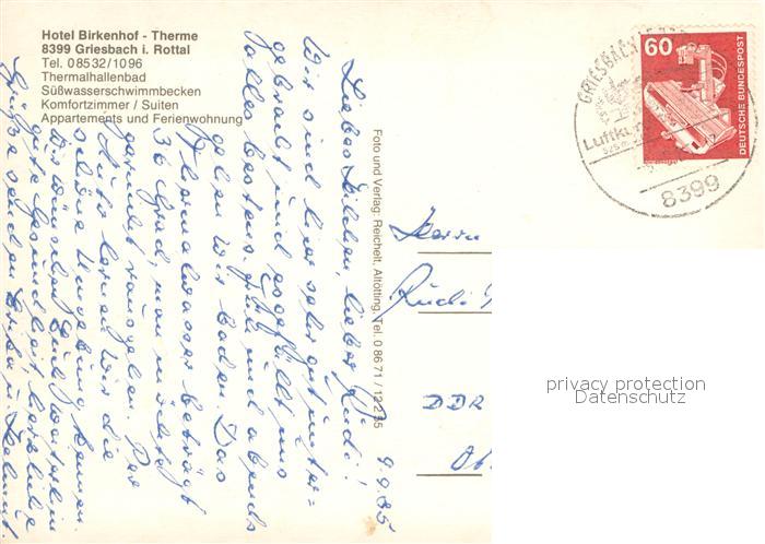 73664086 alte Postkarte Griesbach Rottal Hotel Birkenhof Therme postalisch gelaufen Erhaltung siehe scans [LiesaD40] KatCode: 11110009275124