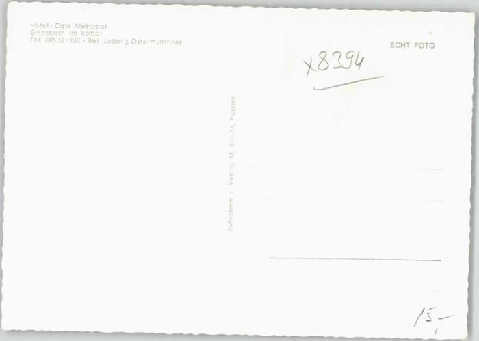 40222377 Griesbach Rottal Hotel Cafe Metropol ungelaufen ca. 1965 KatCode 11110009275124