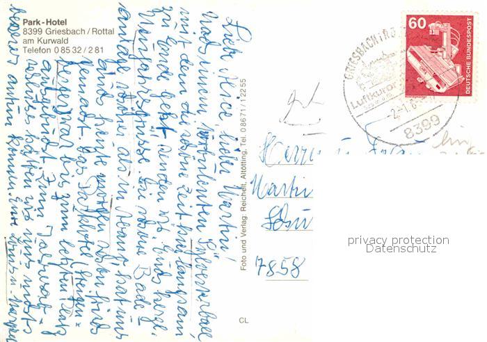 72895568 alte Postkarte Griesbach Rottal Park Hotel Hallen und Freibad postalisch gelaufen Erhaltung siehe scans [WerneD78] KatCode: 11110009275124