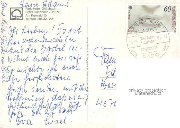 72783238 alte Postkarte Griesbach Rottal Park Hotel Swimming Pool Hallenbad Whirlpool postalisch gelaufen Erhaltung siehe scans [FriedD77] KatCode: 11110009275124