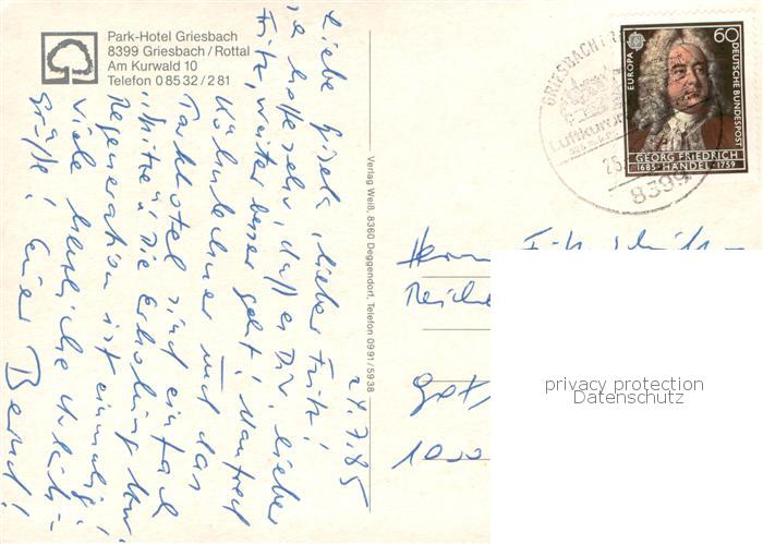 73761974 alte Postkarte Griesbach Rottal Parkhotel Griesbach Pool Gaststube Treppenaufgang Hallenbad postalisch gelaufen Erhaltung siehe scans [FriedD77] KatCode: 11110009275124