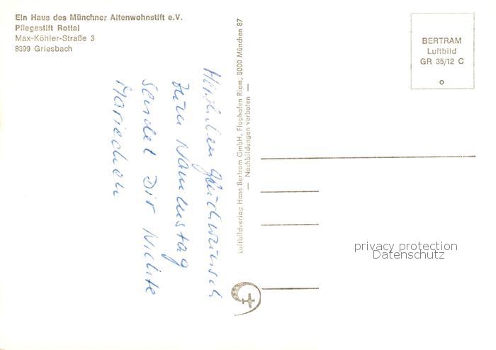 73787406 Griesbach Rottal Pflegestift Rottal postalisch nicht gelaufen Fliegeraufnahme Erhaltung siehe scans [FriedD77] KatCode: 11110009275124