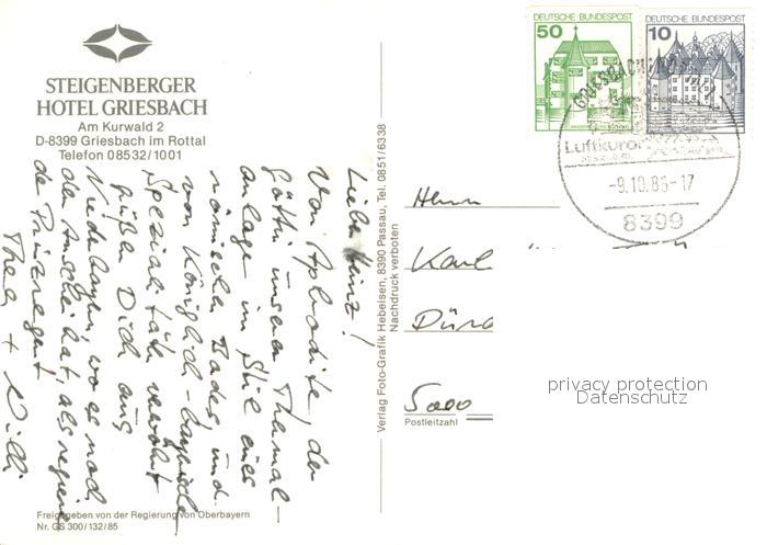 73677549 alte Postkarte Griesbach Rottal Steigenberger Hotel Griesbach Swimmingpool Gastraum Fliegeraufnahme postalisch gelaufen Erhaltung siehe scans [WerneD78] KatCode: 11110009275124