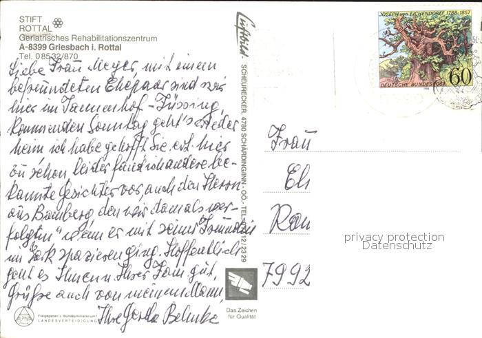 alte Postkarte Griesbach Rottal Stift Rottal Fliegeraufnahme postalisch gelaufen Erhaltung siehe scans