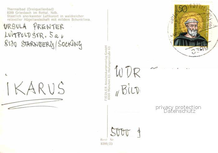 72742353 alte Postkarte Griesbach Rottal Thermalbad Panorama Luftkurort postalisch gelaufen Erhaltung siehe scans [FriedD77] KatCode: 11110009275124