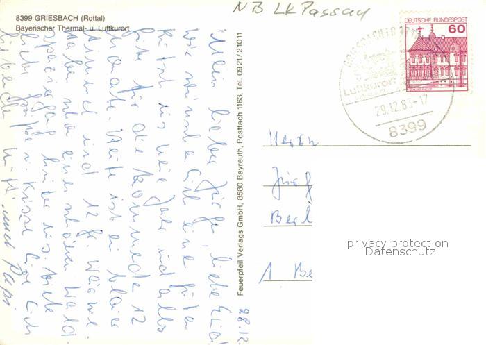 72917062 alte Postkarte Griesbach Rottal postalisch gelaufen Erhaltung siehe scans [NatalD47] KatCode: 11110009275124