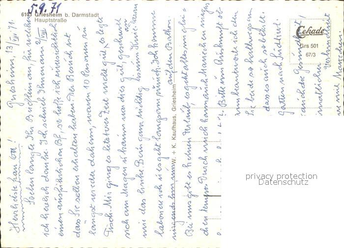71946216 Griesheim Hessen Hauptstrasse postalisch nicht gelaufen Erhaltung siehe scans KatCode: 11110006432008