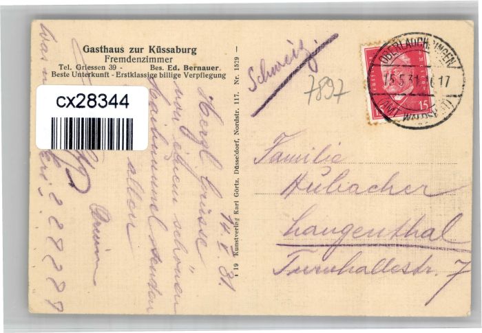 10910593 Griessen Klettgau Gasthaus zur Küssaburg KatCode 11110008337062