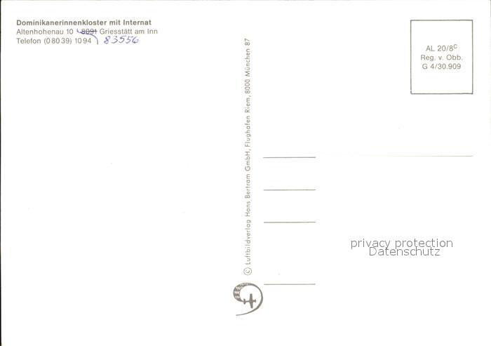 Griesstaett Wasserburg Inn Dominikanerinnenkloster mit Internat Fliegeraufnahme postalisch nicht gelaufen Erhaltung siehe scans