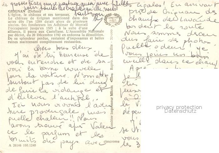 13748033 Grignan 26 Eglise le chateau et ses terrasses Vue aerienne postalisch gelaufen Erhaltung siehe scans [WerneD78] carte postale Wern Katcode 11170026226146