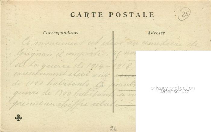 13498100 Grignan Aux glorieux morts pour la Patrie postalisch nicht gelaufen Erhaltung siehe scans [KathaD81] KatCode: 11170026226146
