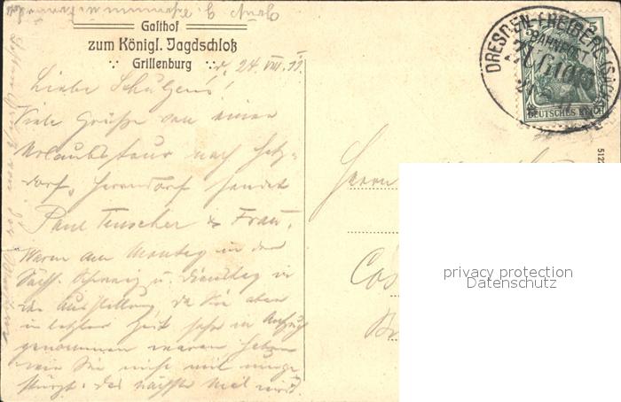 32158749 alte Postkarte Grillenburg Gasthof zum Koeniglichen Jagdschloss postalisch gelaufen Erhaltung siehe scans KatCode: 11110014290440