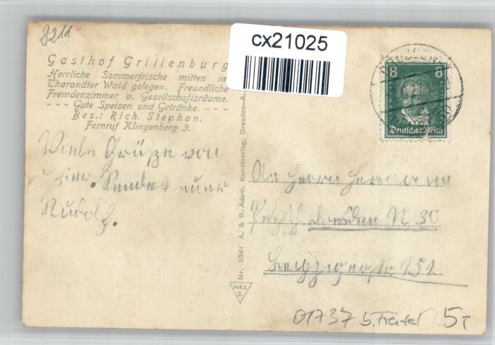 30740519 alte Postkarte Grillenburg Gasthof postalisch gelaufen KatCode: 11110014290440
