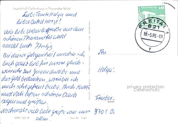 72474624 alte Postkarte Grillenburg Jagdschloss postalisch gelaufen Erhaltung siehe scans KatCode: 11110014290440