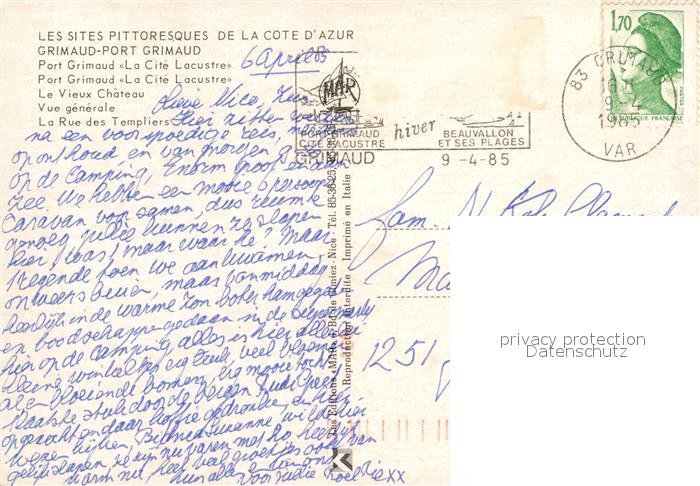 13165693 carte postale Grimaud Port Grimaud La Cite Lacustre Vueux Chateau Vue generale La Rue des Templiers postalisch gelaufen Erhaltung siehe scans [WerneD78] KatCode: 11170083183068
