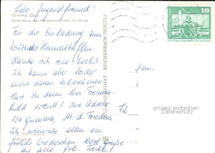 72115855 alte Postkarte Grimma Gattersburg Haengebruecke postalisch gelaufen Erhaltung siehe scans KatCode: 11110014383120