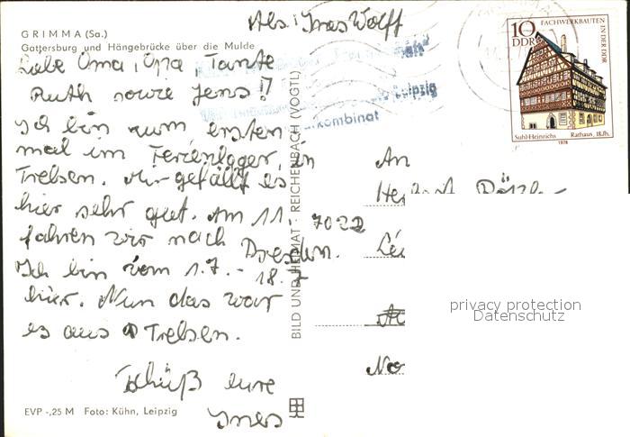 72128787 alte Postkarte Grimma Gattersburg und Haengebruecke ueber die Mulde postalisch gelaufen Erhaltung siehe scans KatCode: 11110014383120