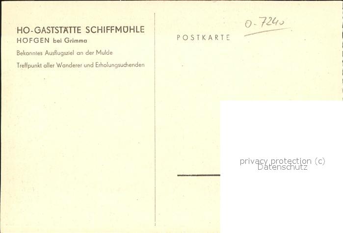41476917 Grimma HO Gaststaette Schiffmuehle postalisch nicht gelaufen Erhaltung siehe scans KatCode: 11110014383120