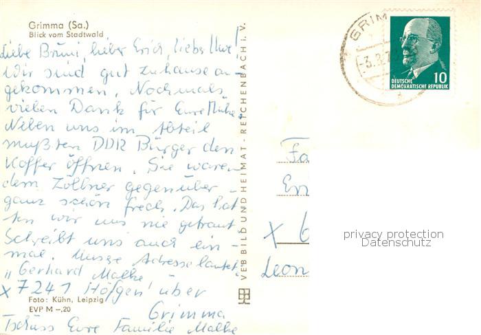 73778841 alte Postkarte Grimma Panorama Blick vom Stadtwald postalisch gelaufen Erhaltung siehe scans [FriedD77] KatCode: 11110014383120