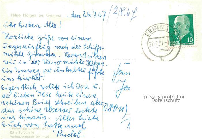 34146261 alte Postkarte Grimma Sachsen Faehre Hoefgen postalisch gelaufen Erhaltung siehe scans [FriedD77] KatCode: 11110014383120