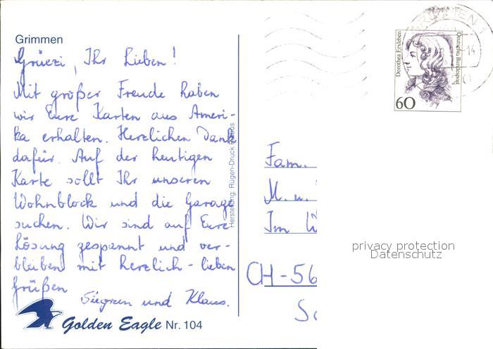 72585746 alte Postkarte Grimmen Fliegeraufnahme postalisch gelaufen Erhaltung siehe scans [LiesaD40] KatCode: 11110013057036