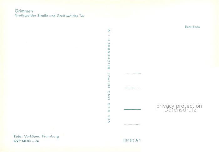 73722880 Grimmen Greifswalder Strasse und Greifswalder Tor postalisch nicht gelaufen Erhaltung siehe scans [WerneD78] KatCode: 11110013057036