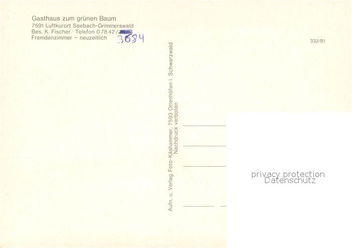 73642795 Grimmerswald Gasthaus zum gruenen Baum Gastraum im Schwarzwald postalisch nicht gelaufen Erhaltung siehe scans [FriedD77] KatCode: 11110008317126