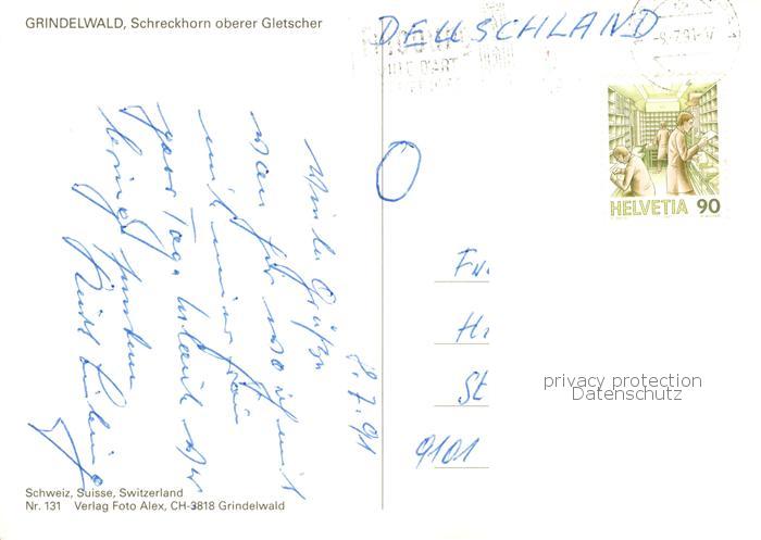 13865560 alte Postkarte Grindelwald BE Hotel Wetterhorn Panorama Blick gegen Schreckhorn Gletscher Berner Alpen postalisch gelaufen Erhaltung siehe scans [FriedD77] KatCode: 11470060175252