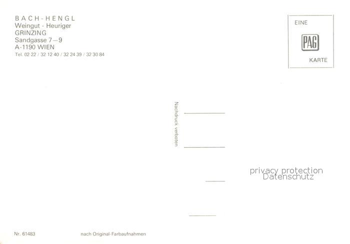 73634463 Grinzing Wien Bach Hengl Weingut Heurigen Schank postalisch nicht gelaufen Erhaltung siehe scans [FriedD77] KatCode: 11390130090001