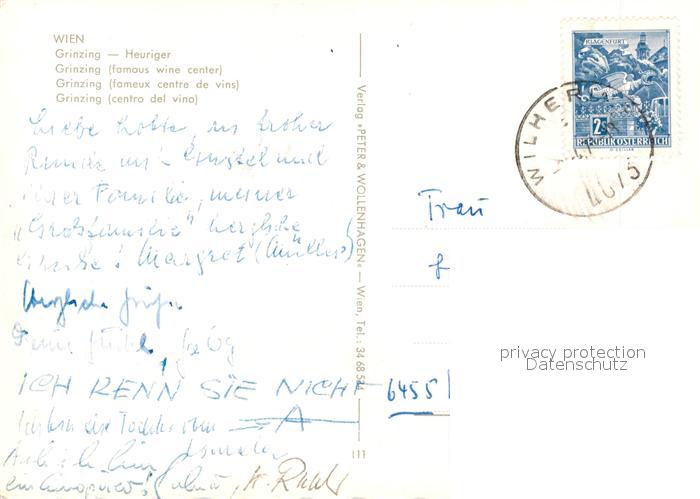 73249696 alte Postkarte Grinzing Wien Heuriger postalisch gelaufen Erhaltung siehe scans [NatalD47] KatCode: 11390130090001