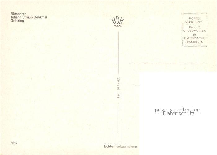 73034334 Grinzing Wien Riesenrad Johann Strauss Denkmal Heuriger Maly postalisch nicht gelaufen Erhaltung siehe scans [PaolaD17] KatCode: 11390130090001