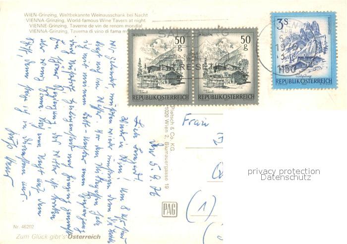 73625933 alte Postkarte Grinzing Wien Weinausschank bei Nacht Teilansichten postalisch gelaufen Erhaltung siehe scans [FriedD77] KatCode: 11390130090001