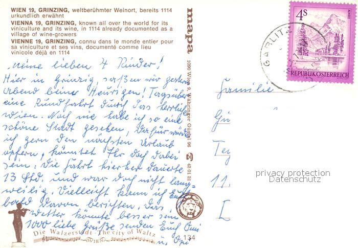 73166694 alte Postkarte Grinzing Wien Weinrestaurant postalisch gelaufen Erhaltung siehe scans [LiesaD40] KatCode: 11390130090001