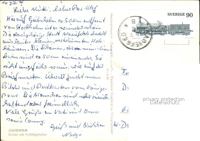 old postcard Gripsholms Schloss Folkhoegskolan postalisch gelaufen Erhaltung siehe scans