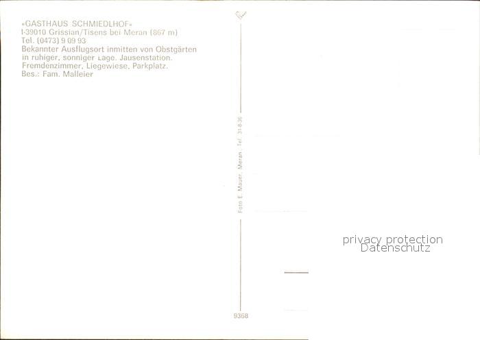 Grissian Gasthaus Schmiedlhof postalisch nicht gelaufen Erhaltung siehe scans