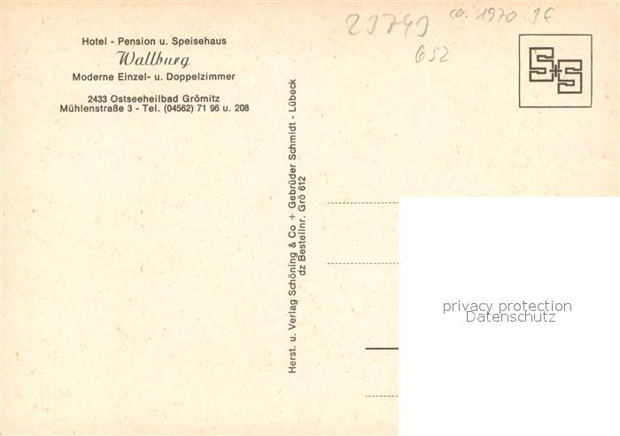 73569367 Gr?mitz Ostseebad Hotel-Pension Wallburg postalisch nicht gelaufen Erhaltung siehe scans [PaolaD17] KatCode: