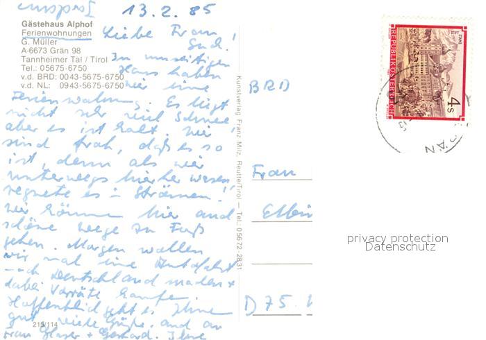 73588664 alte Postkarte Gr?n Tirol G?stehaus Alphof postalisch gelaufen Erhaltung siehe scans [PaolaD17] KatCode: